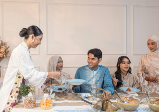 断食明けの朝には、多くの人々がモスクへ礼拝に向かい、その後、両親や年長者を訪ねてこれまでの行いについて許しを請い、感謝を伝えます。さらに親戚や友人の家を訪れ、共に食卓を囲みながら祝います。親しい友人を招く、オープン・ハウスと呼ばれる会を開くことも